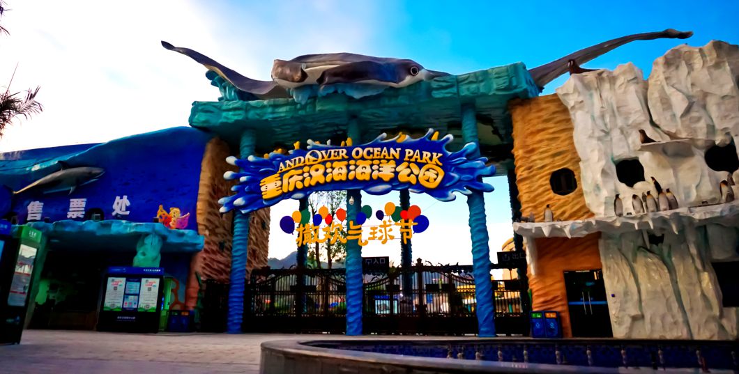 重庆海洋公园定位以高水平多功能海洋景观,海滨娱乐为特色,公园项目建设共分三期:一期已投资1亿多元,以休闲、水上娱乐为主的海滨风情园已于2001年向游客开放。此园规模宏大。面积达70000余平方米,其中惊险刺激的高台滑道、乘筏滑道、螺旋滑道、高速滑道以及6条并列布局的竞赛滑道为西部独有。