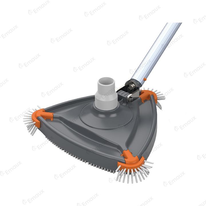 360度旋转重型设计,便于操作和快速清洁。三角侧刷,能够清洁游泳池任何角落。底部毛刷能够清洁池底污垢,可安装30/50mm的真空软管。