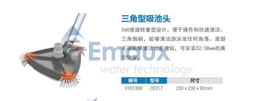 旋转豪华三角型吸池头 连PP刷毛手柄